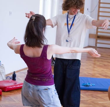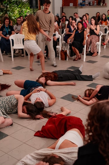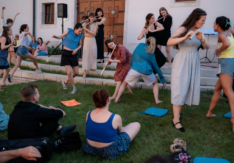 In our lessons, we use theater games, movement, and improvisation exercises to bring energy to our bodies and instruments and learn how to express our emotions through them. Physical and mental warmups help to awaken our instincts, and group exercises help build teamwork and awareness. Our goal is to help students how to bring their own personalities into their playing, and understand that each one of them has a unique voice. By bringing students outside of their comfort zones, we hope that they can discover new means of expression. To culminate, we create collaborative performances together that involve moving while playing and free improvisation.